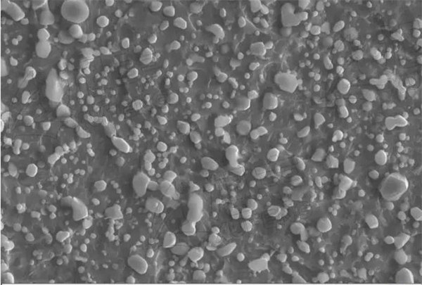圖1.無機(jī)填料填充ABS的電鏡圖